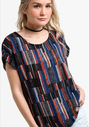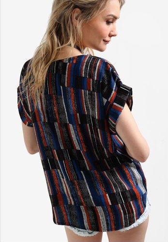 Imbued with graphic prints for that contemporary touch, this top styled in cap sleeves enhances that urban demeanor for your summer ensembles.