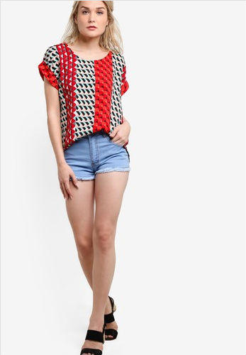 Steeped in Aztec prints for that contemporary touch, this top styled in cap sleeves enhances that urban demeanor for your summer ensembles.