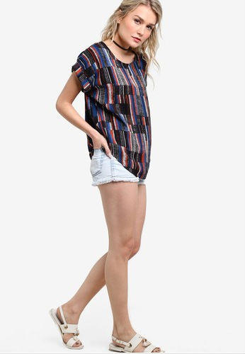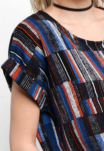 Imbued with graphic prints for that contemporary touch, this top styled in cap sleeves enhances that urban demeanor for your summer ensembles.