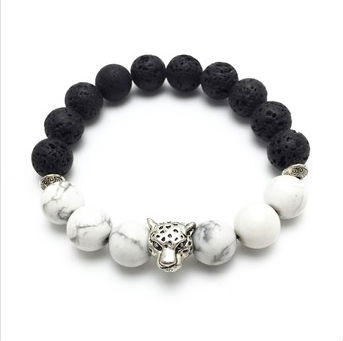 Leopard Head Detailed Bracelet with Lava Stone & Howlite